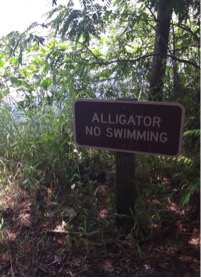 In der Folge öffnete sich der Wald, der bis dahin praktisch eine geschlossene Blätterdecke über dem Bach bot, zu einer Buschlandschaft. Dies gefiel offensichtlich auch einer Reihe von kleinen und großen Alligatoren, die sich alle paar hundert Meter sonnten … alle ganz cool. Auch wenn hier jetzt der Eindruck entstehen sollte dass ich die ganze Fahrt über auf Alligatoren fixiert war – ein entwicklungsgeschichtlich sehr ursprünglicher Teil meines Gehirns war das mit Sicherheit – war doch ein deutlich größerer Teil meines Großhirns damit beschäftigt, die unglaublich schönen Eindrücke um, an und in dem Fluss aufzunehmen und zu verarbeiten. Mit Sicherheit ist der Juniper Run eines der Highlights meines Paddlerlebens und die Fahrt ging nach knapp 4 Stunden viel zu schnell zu Ende.